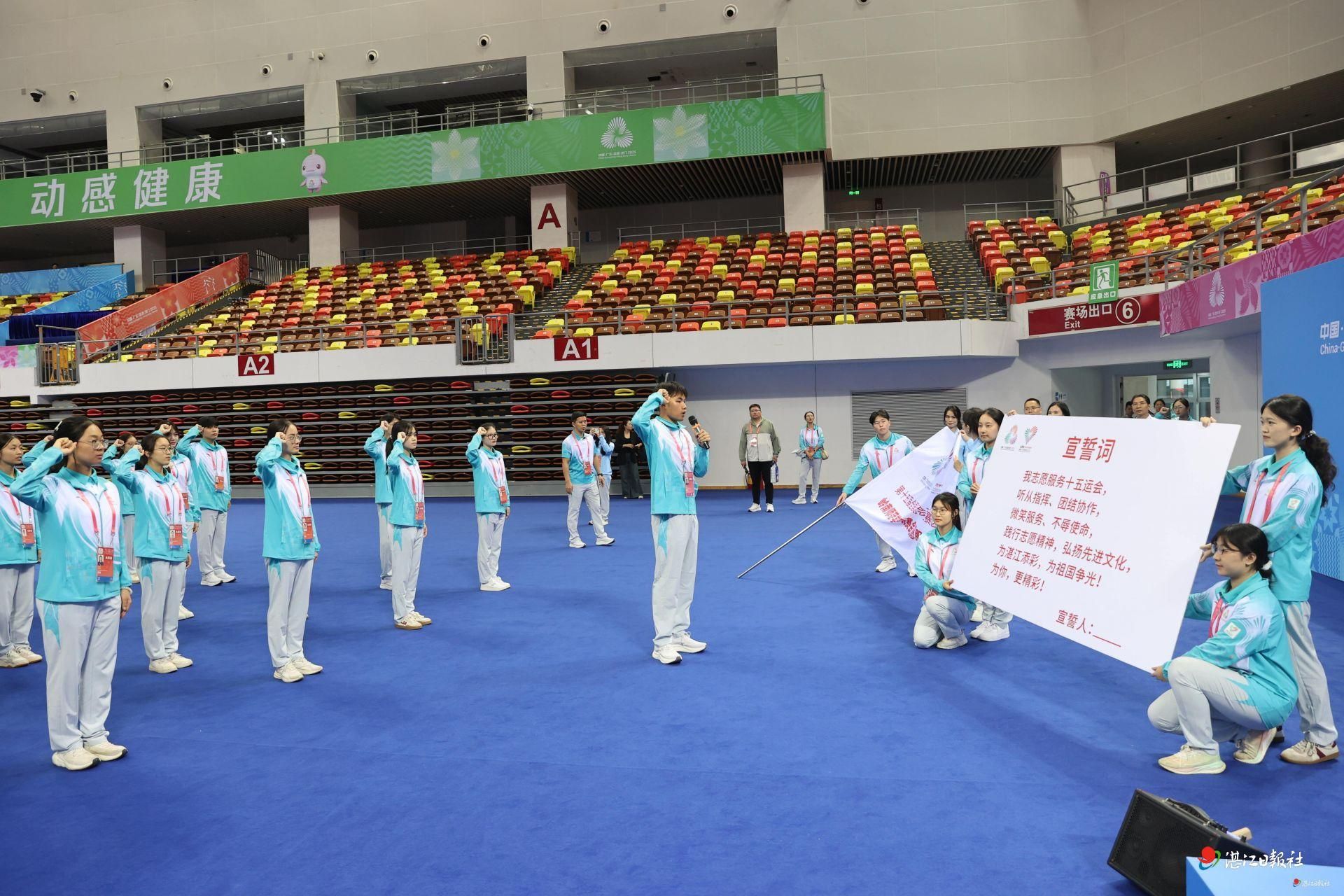 第十五届全运会湛江赛区志愿者誓师动员仪式在奥体中心举行。记者欧阳泽 摄