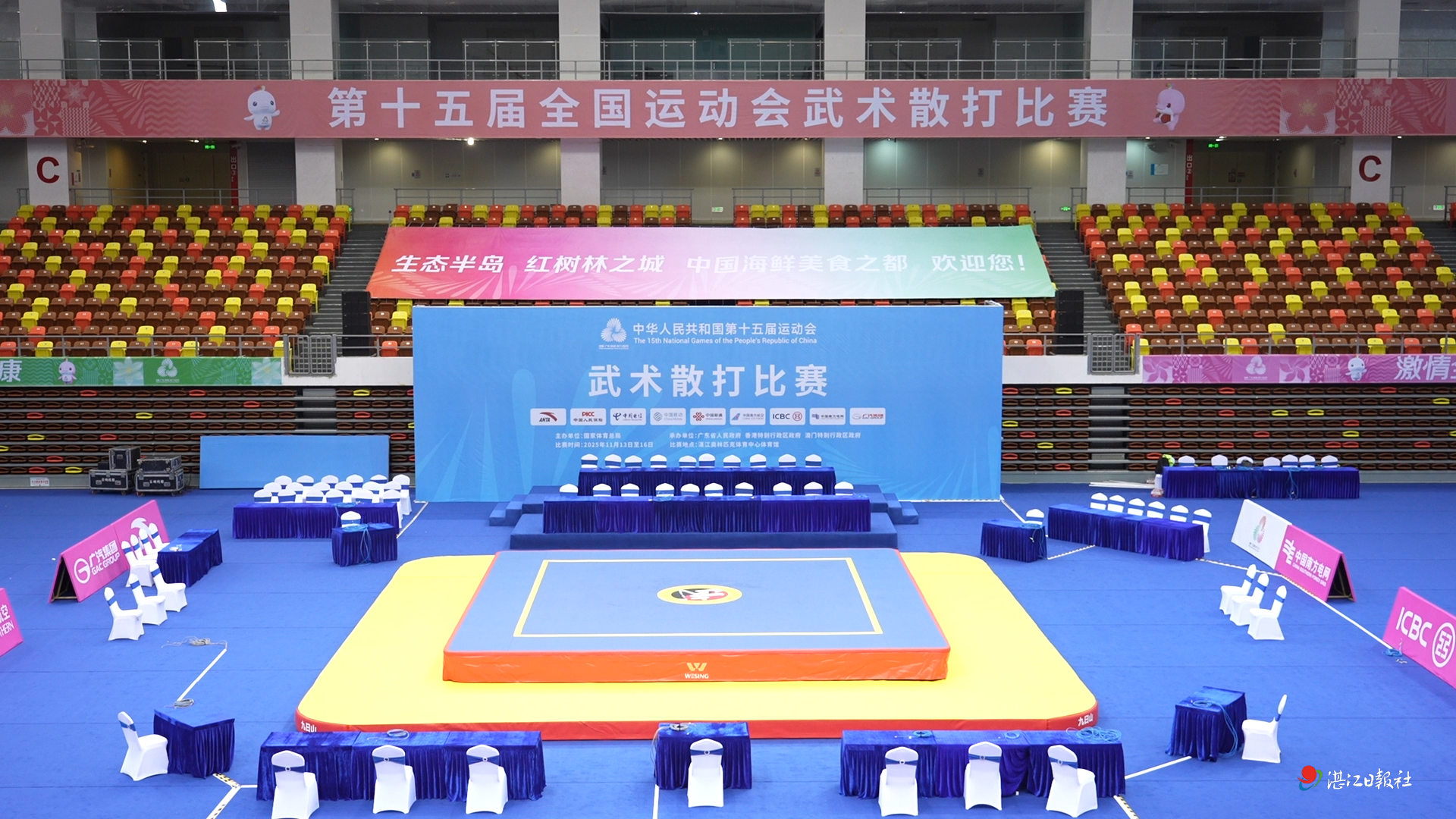 湛江奥体中心体育馆历经两轮升级改造,泛光照明、LED大屏、新闻发布厅等硬件设施全面对标国家级赛事和央视直播要求,已通过省执委会验收,为运动员提供了专业的竞技平台。70名经过严格培训考核的裁判员严阵以待,确保公平公正。