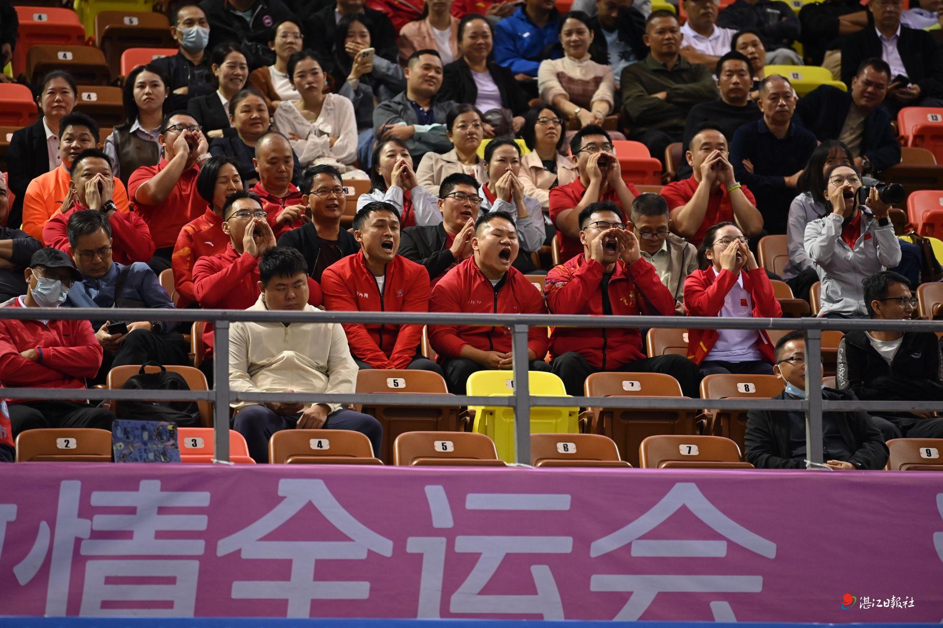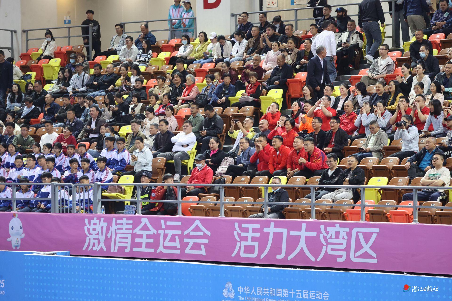 十五运会湛江赛区的赛场内,灯光璀璨,呐喊声此起彼伏。观众席上一张张热情洋溢的脸庞,与擂台上选手的拼搏身影相映成趣,构成了一幅热血沸腾的竞技画卷。