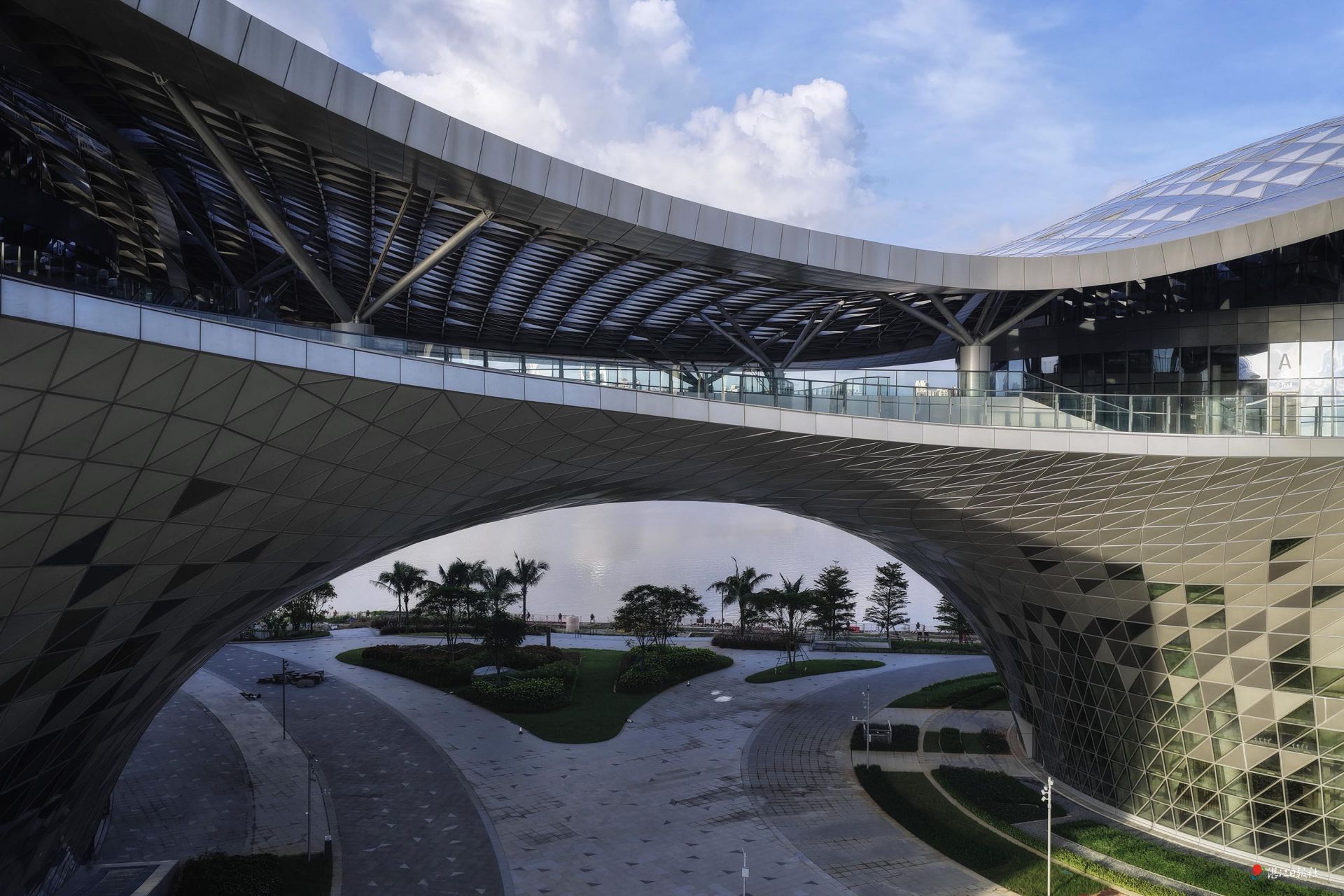 - 湛江文化中心的幕墙采用渐变幻彩铝板和玻璃组合,总面积达62500平方米,形成波浪形动态视觉效果,与周围的海洋景观相得益彰。