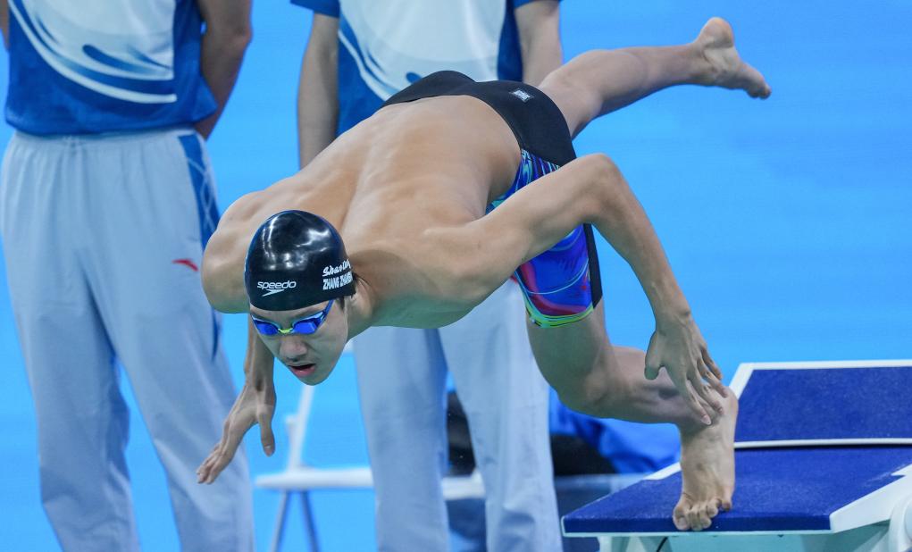 张展硕再度闪耀泳池,在男子800米自由泳中游出7分46秒69,斩获个人第三枚金牌的同时,第三次刷新全国青年纪录。站在新起点,他谦虚地表示要沉下心来继续努力,向着更高的目标前进。