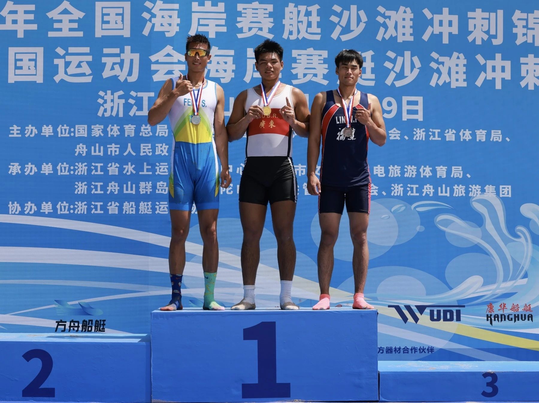 在14日举行的男子单人划艇项目决赛中,赛道水流湍急,水门设置密集,对选手技术与心态的双重考验贯穿全程。经过激烈角逐,最终,浙江队选手季俊宇以105.81秒的成绩夺得冠军。在主场观众们的呐喊助威声中,代表广东队出战的“湛将”邹伟健以109.55秒的成绩获得亚军。山东队选手朱博文以109.83秒的成绩取得季军。