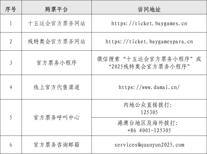 十五运会和残特奥会官方购票及咨询渠道。(来源:十五运会和残特奥会官网)