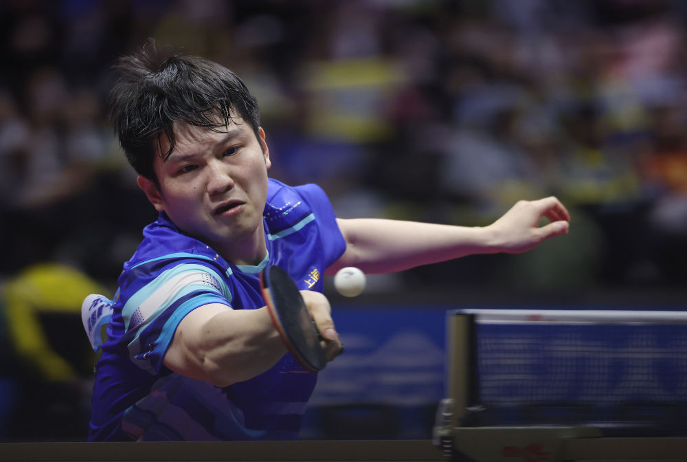 11月15日,樊振东在比赛中回球。新华社记者 刘续 摄