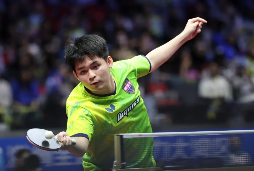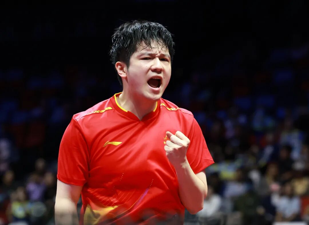 11月16日,上海队选手樊振东在比赛中回球。新华社记者 陈斌 摄 11月16日,第十五届全国运动会乒乓球项目在澳门银河综艺馆展开男单决赛的争夺,上海队选手樊振东战胜海南队选手林诗栋,夺得金牌。 11月16日,上海队选手樊振东在比赛中庆祝。新华社记者 梁旭 摄 11月16日,海南队选手林诗栋在比赛中回球。新华社记者 刘续 摄