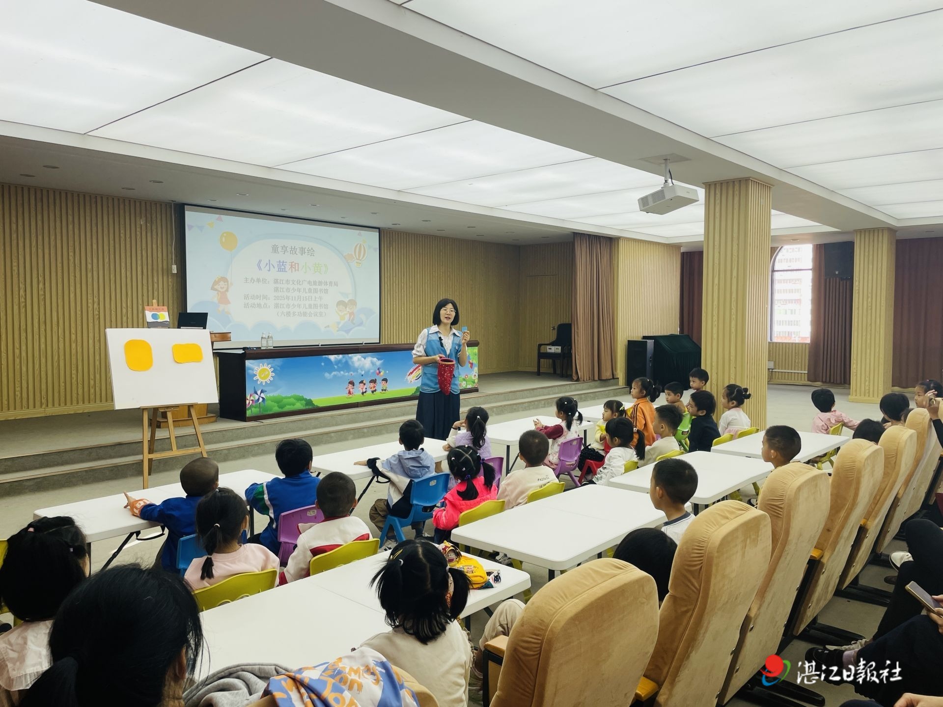 11月15日上午,一场以经典绘本《小蓝和小黄》为主题的创意故事会在湛江市少年儿童图书馆温馨上演。本次活动巧妙地将魔术、阅读、游戏与手工融为一体,为孩子们开启了一段充满想象与发现的色彩探索之旅。93名读者参加了活动。