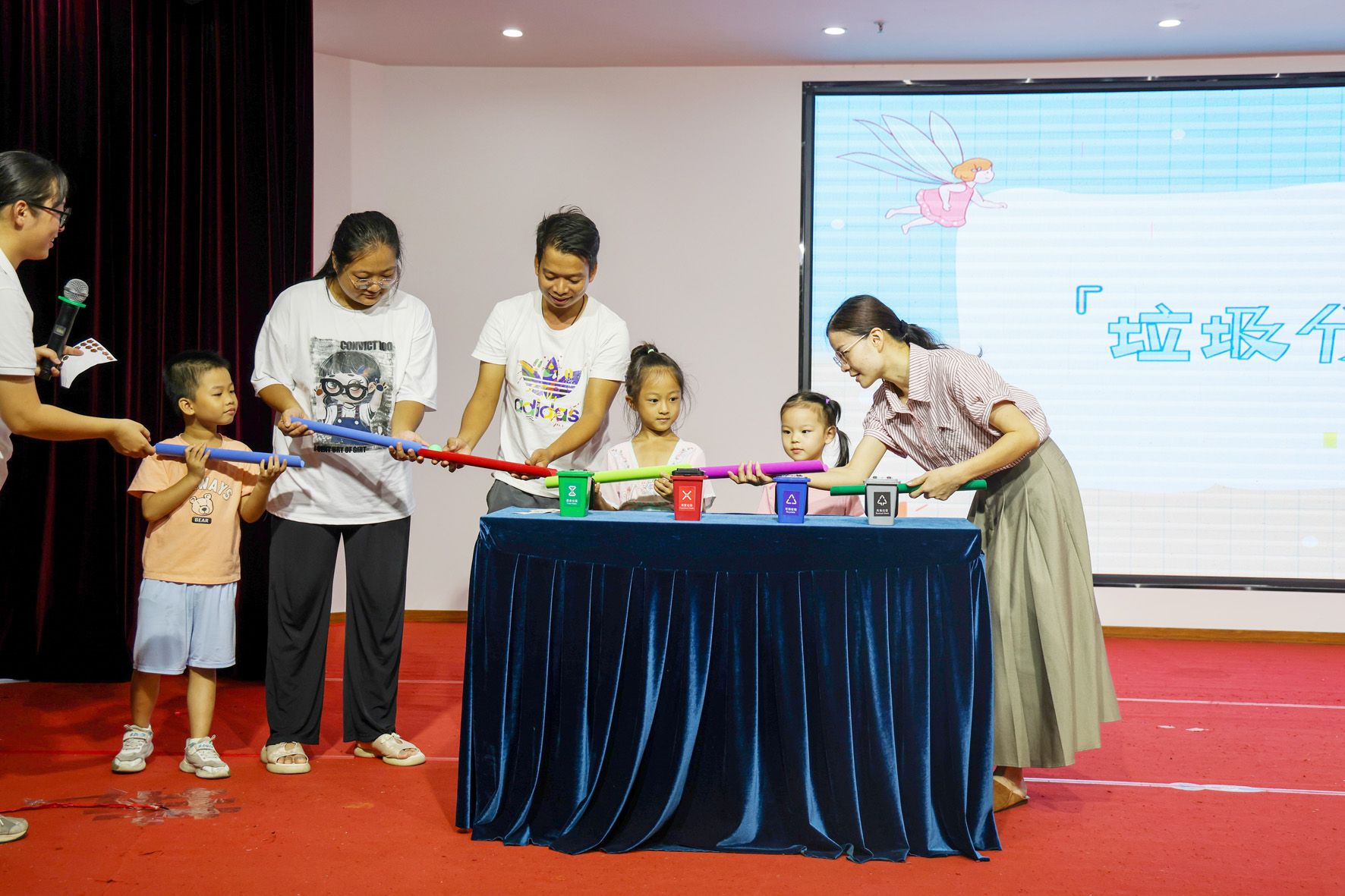 活动现场设置了多项融合趣味与教育意义的互动环节。“夹乒乓球”游戏要求参与者在限定时间内将彩色乒乓球用长筷夹起,并准确投入对应分类桶中,不少孩子全神贯注、小心翼翼,家长则在旁鼓励指导,场面温馨有爱;“抛沙包”环节则更考验对垃圾分类知识的实际掌握,参与者需将印有各类垃圾图案的沙包投掷到四色分类格中,投中并答对问题方可积分。许多家庭组成“亲子战队”,在协作中增进环保意识,在游戏中强化垃圾分类记忆。