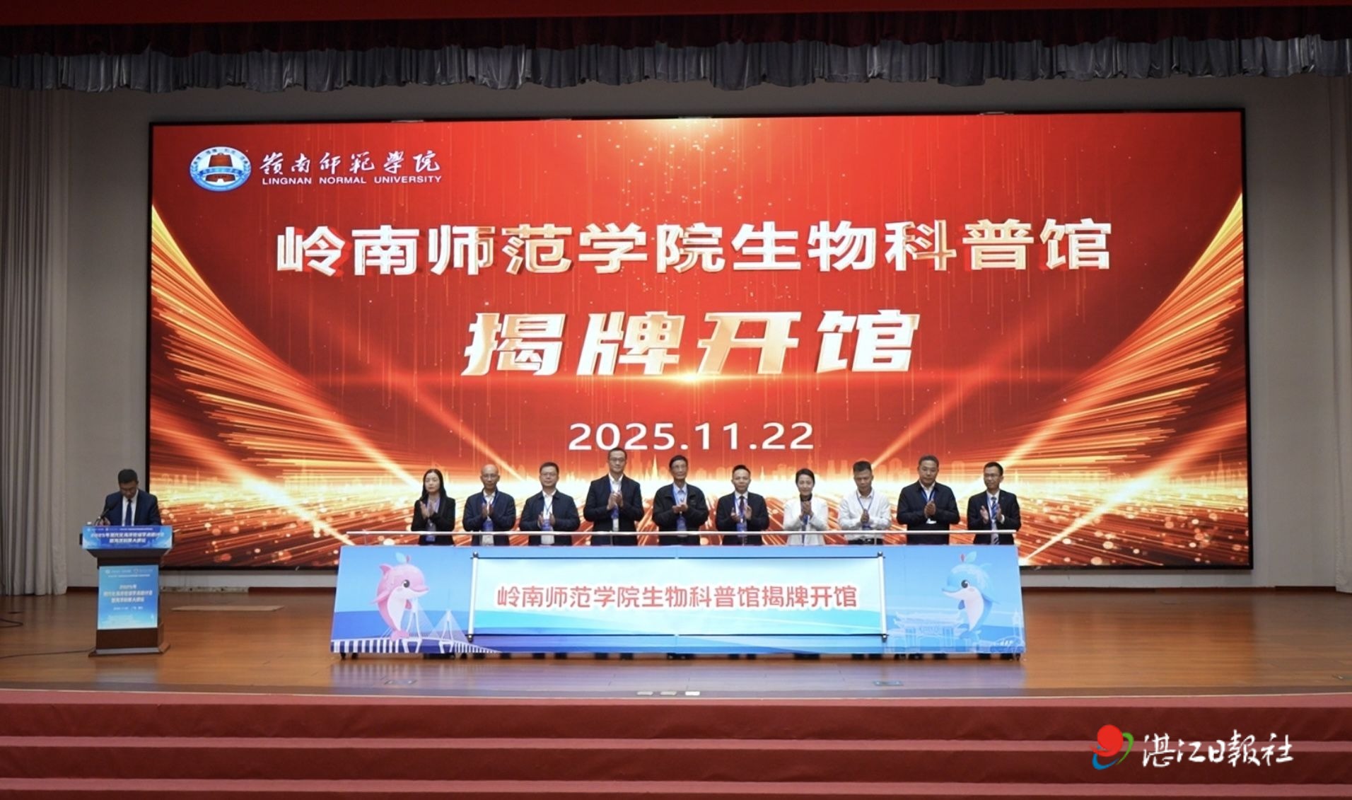 11月22日,2025年现代化海洋牧场学术研讨会暨海洋科普大讲坛在岭南师范学院召开,来自全国各地的专家学者齐聚一堂,共商海洋牧场发展大计,共话海洋科普时代新篇,并一同见证岭南师范学院生物科普馆揭牌。
