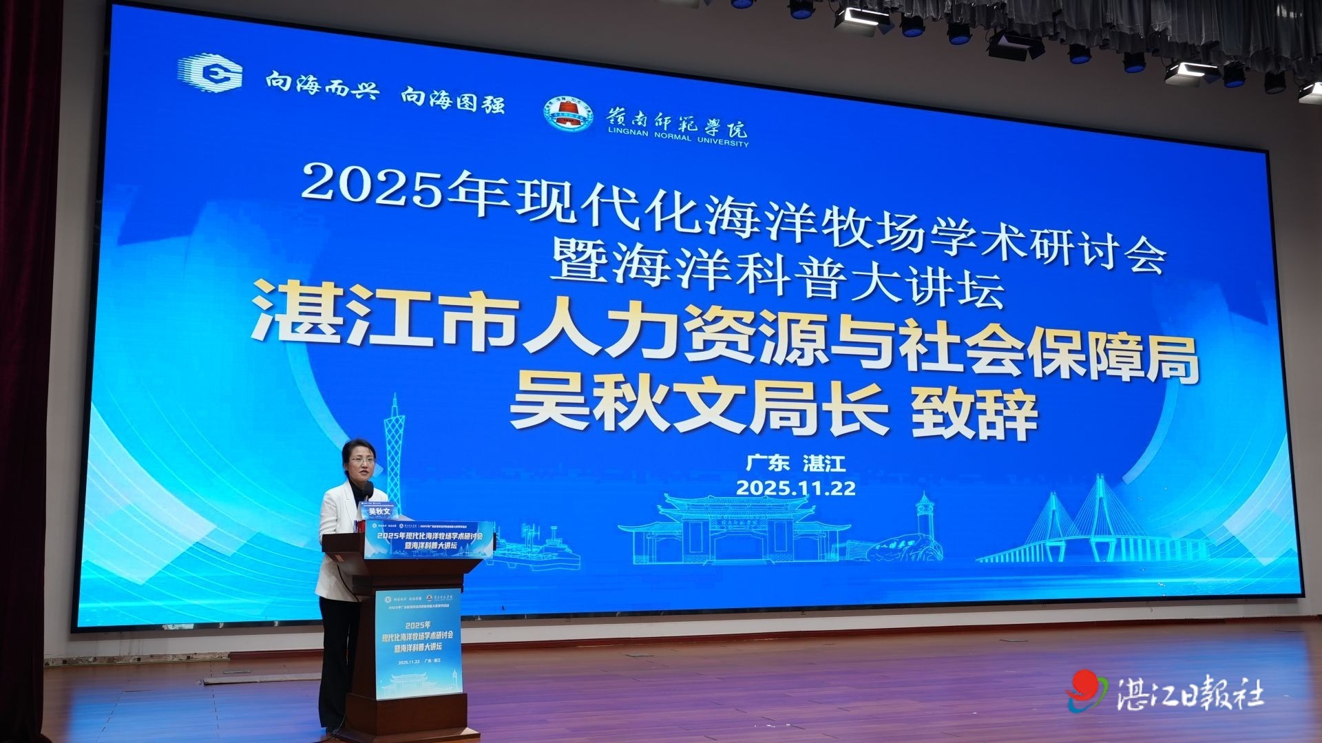 市人力资源社会保障局主要负责人指出,此次活动是2025年广东省海洋经济职业技能大赛系列活动的重要组成部分。大赛自启动以来,得到了各主办、承办单位的通力协作和社会各界的广泛关注。本次学术研讨会暨海洋科普大讲坛的举办,进一步丰富了大赛的内涵,拓展了大赛的外延,实现了“以赛促学、以赛促研、以赛促产”的良好效应。希望各相关单位以此次研讨会为纽带,深化合作、凝聚合力,共同推动海洋牧场现代化、智能化、绿色化发展,让海洋经济成为湛江乃至广东高质量发展的新标杆。