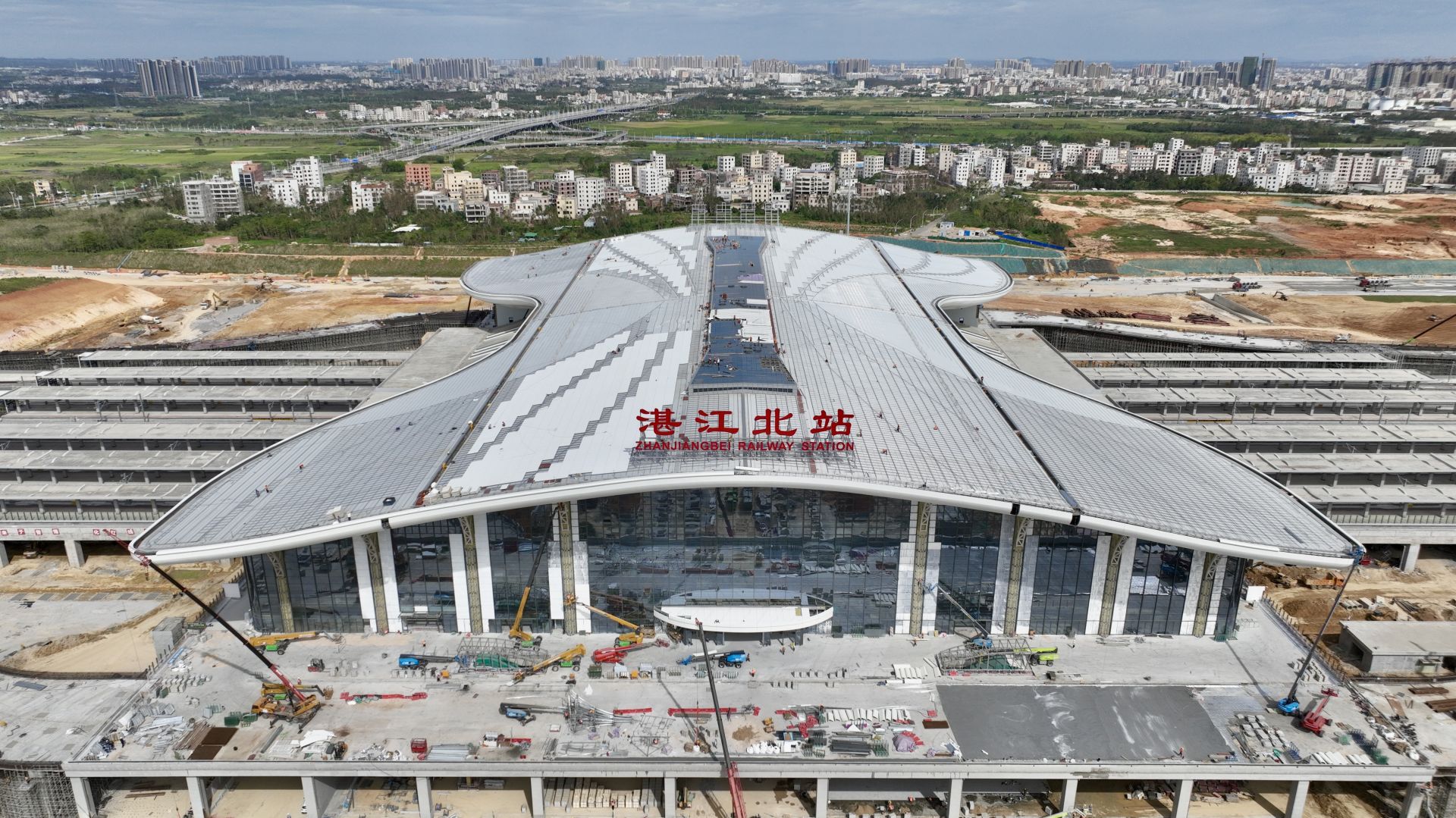 广湛高铁阳江北站智能交通枢纽工程项目由阳江市交投集团投资建设、中交四航局承建,总用地面积52.5万平方米,总建筑面积达4.45万平方米,建设道路总长约6.09千米。项目涵盖地下综合换乘中心、地面配套换乘设施及多条市政道路建设,建成后将解决铁路交通系统和城市交通系统换乘问题。