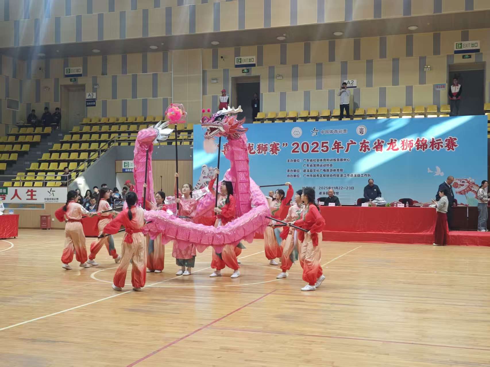 龙腾狮舞,万众瞩目。11月22日至23日,2025年广东省龙狮锦标赛在遂溪县体育馆举行。比赛由广东省社会体育和训练竞赛中心、广东省龙狮运动协会主办,遂溪县文化广电旅游体育局承办。