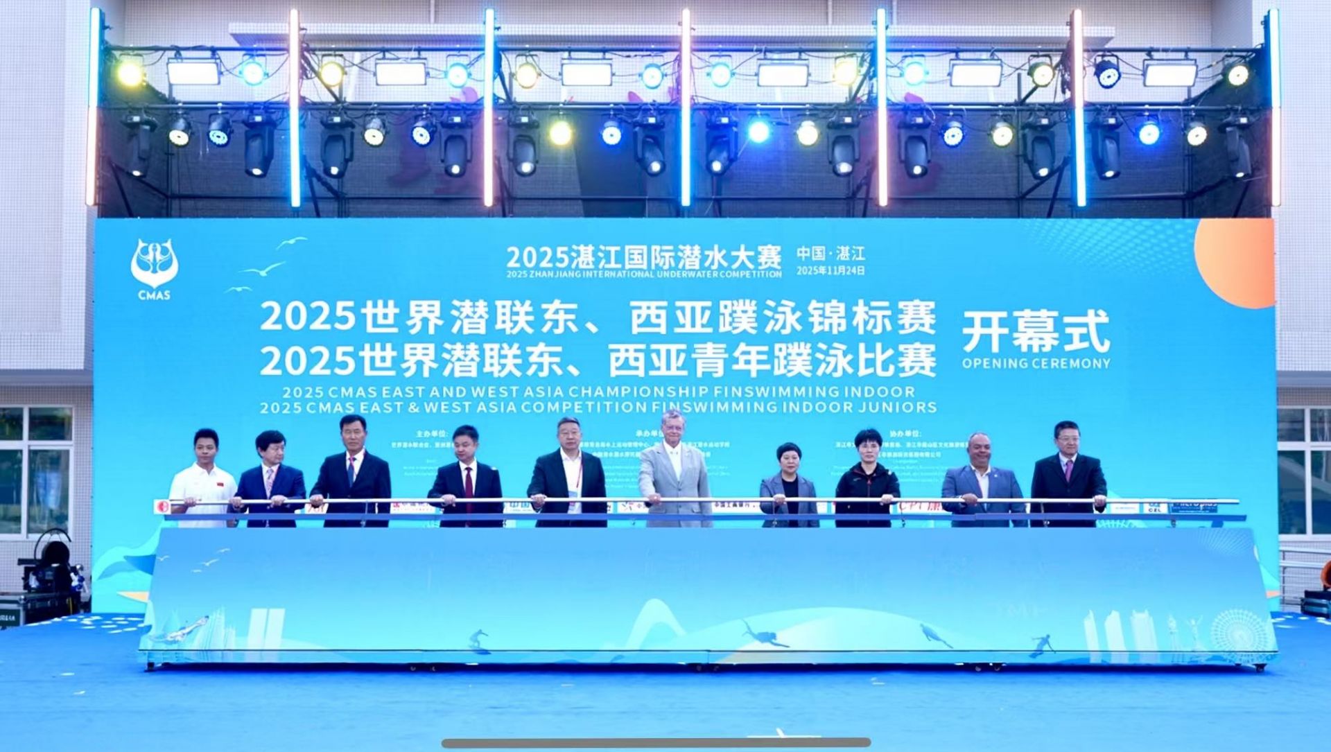 11月24日,2025湛江国际潜水大赛,2025世界潜联东、西亚蹼泳锦标赛,2025世界潜联东、西亚青年蹼泳比赛开幕式在国家体育总局湛江潜水运动学校举行。(据11月25日《湛江日报》)
