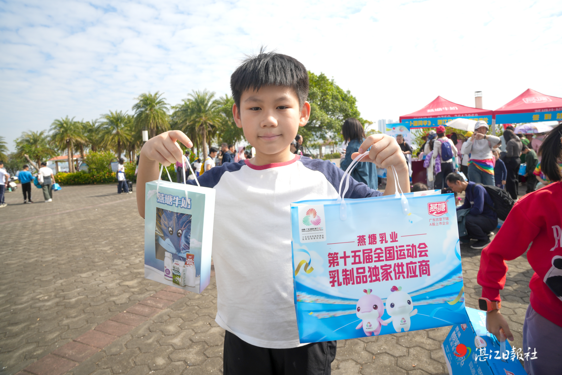 11月23日,湛江市滨湖湿地公园晨曦广场暖意融融,彩旗招展。伴随着欢快的音乐,“为十五运打call燕塘牛奶·活力湛江”亲子公益徒步活动正式拉开帷幕。