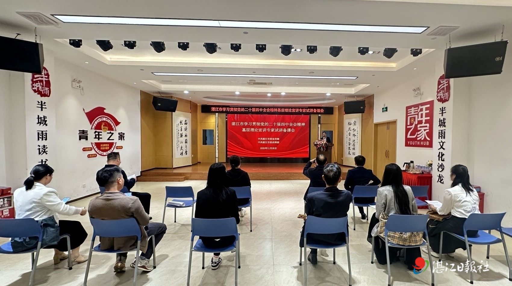 11月26日,由湛江市委宣传部、湛江市委讲师团主办的湛江市学习贯彻党的二十届四中全会精神基层理论宣讲专家试讲备课会举行。来自湛江市委党校、广东海洋大学马克思主义学院、岭南师范学院马克思主义学院、广东医科大学马克思主义学院的理论专家齐聚一堂,通过试讲展示、点评指导、专题研讨等形式,系统提升基层理论宣讲队伍的政策解读能力和实践教学水平。