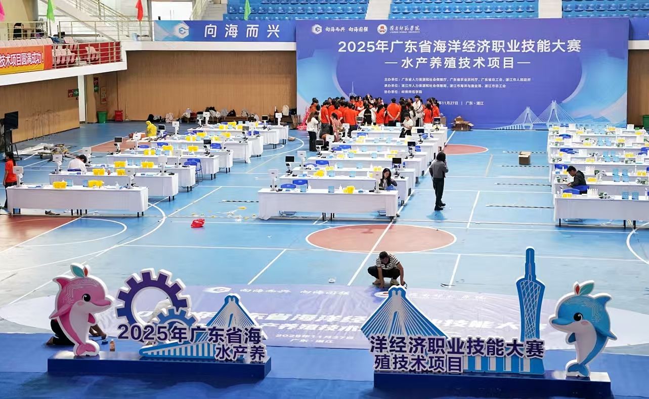 11月27日,作为2025年广东省海洋经济职业技能大赛的五大竞赛项目之一的水产养殖技术赛项,在岭南师范学院赛点迎来了开幕式与紧张激烈的正式比赛。来自全省的行业精英与院校学子同台竞技,在显微镜下与方寸操作台间,展开一场别开生面的“碧海争锋”,展现现代水产养殖的科技魅力。