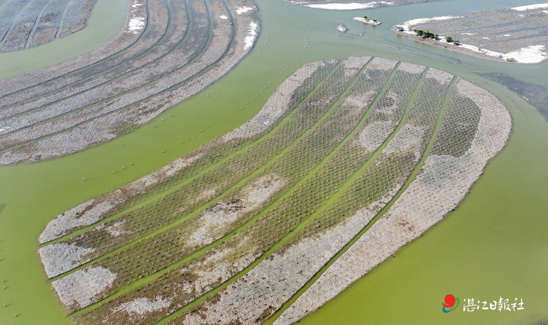 这片被习近平总书记誉为“国宝”、叮嘱“要像爱护眼睛一样守护好”的红树林,正是中交广州航道局有限公司(以下简称“中交广航局”)湛江生态修复项目的核心阵地。作为全国首个大规模红树林“种养耦合”生态修复项目,它正以创新实践破解“生态保护与经济发展”的难题,为“绿美广东”建设写下生动注脚。