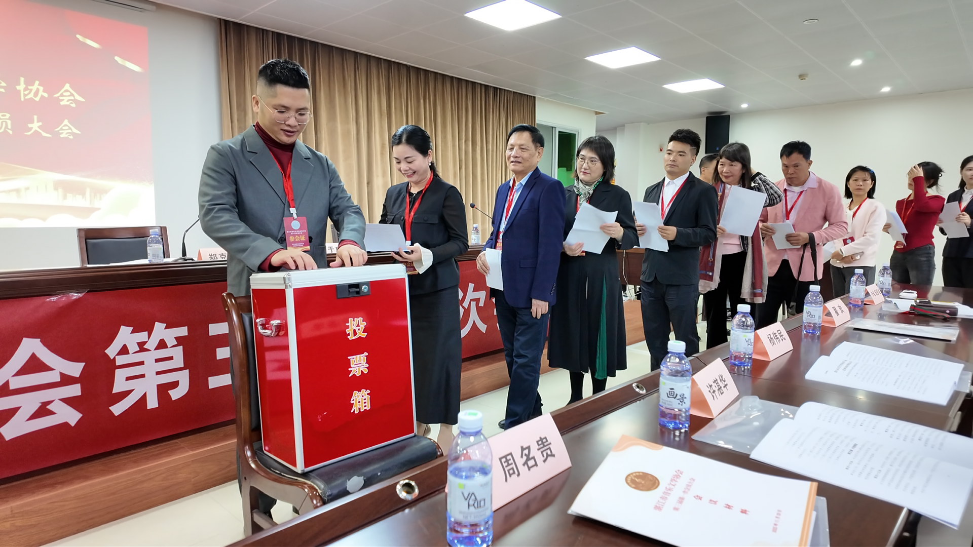 11月29日,湛江市音乐文学协会第三届第一次会员大会在湛江市城综局会议室举行,顺利完成换届。张燕当选为协会主席。 大会听取并审议通过了第二届理事会、财务、监事会等三方面工作报告;票决通过了章程修订草案;选举产生了协会第三届领导班子。 作者:视频/记者任博 文字/记者陈妍 编辑:任博 值班主任:吴明澈、张丽华、周文硕