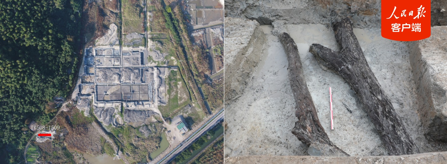 出土的杨梅古树遗存。