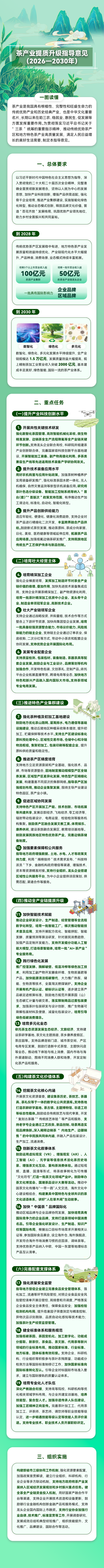 2月14日,工业和信息化部等五部门印发的《茶产业提质升级指导意见(2026—2030年)》对外发布。