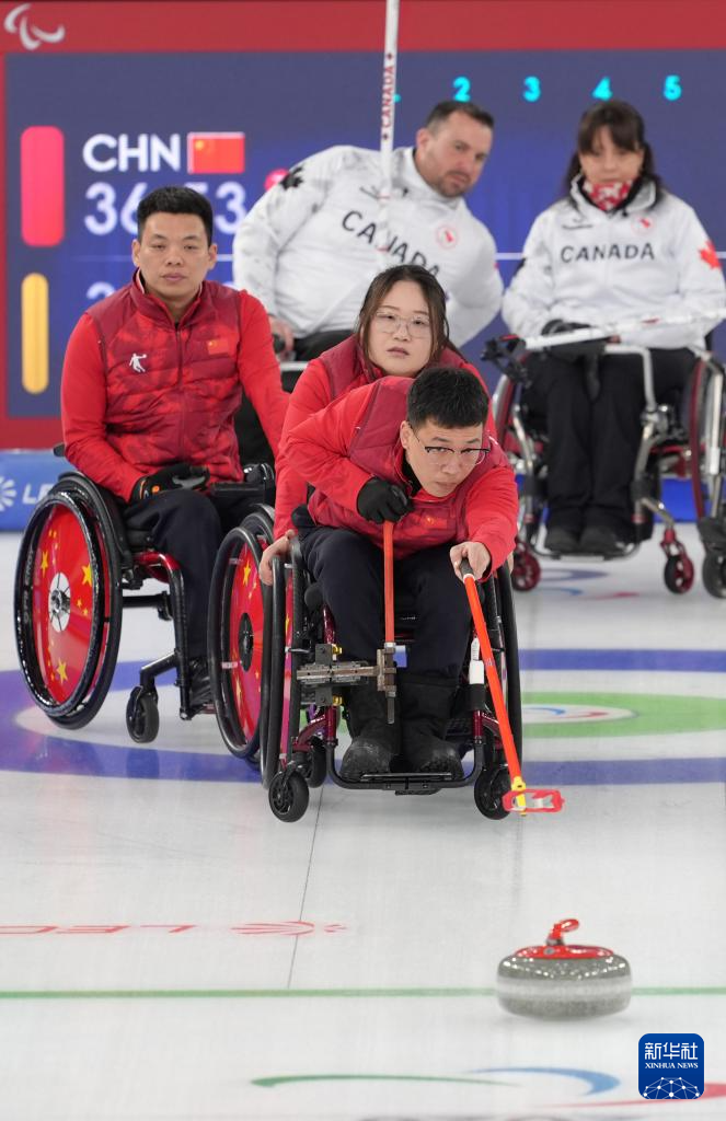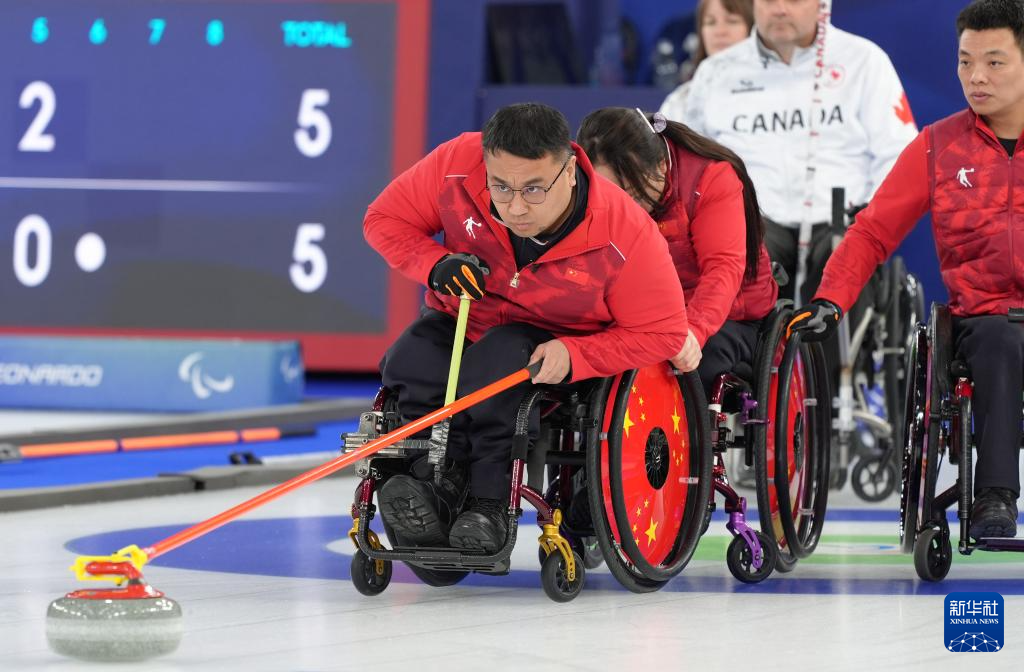 当地时间3月10日,在意大利科尔蒂纳举行的米兰-科尔蒂纳冬残奥会轮椅冰壶混合团体循环赛第七轮比赛中,中国队4比9负于加拿大队。