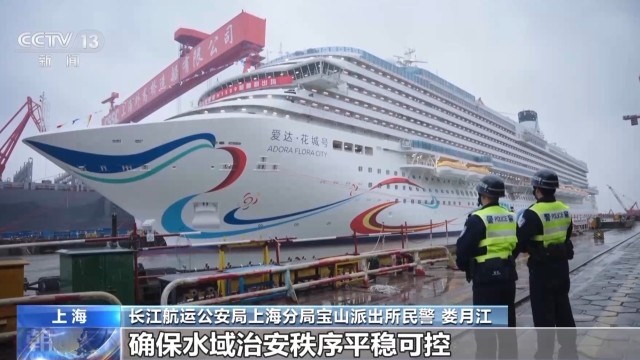 长江航运公安局上海分局宝山派出所民警 娄月江:我们为邮轮设立电子警戒区,对过往船舶的信息和航行动态进行智能分析,实时预警。同时加强对邮轮周边水域的巡防频次和力度,确保水域治安秩序平稳可控。