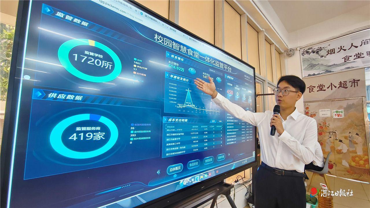 在湛江市第四中学的饭堂里,工作人员介绍“学膳e管”智慧监管平台。
