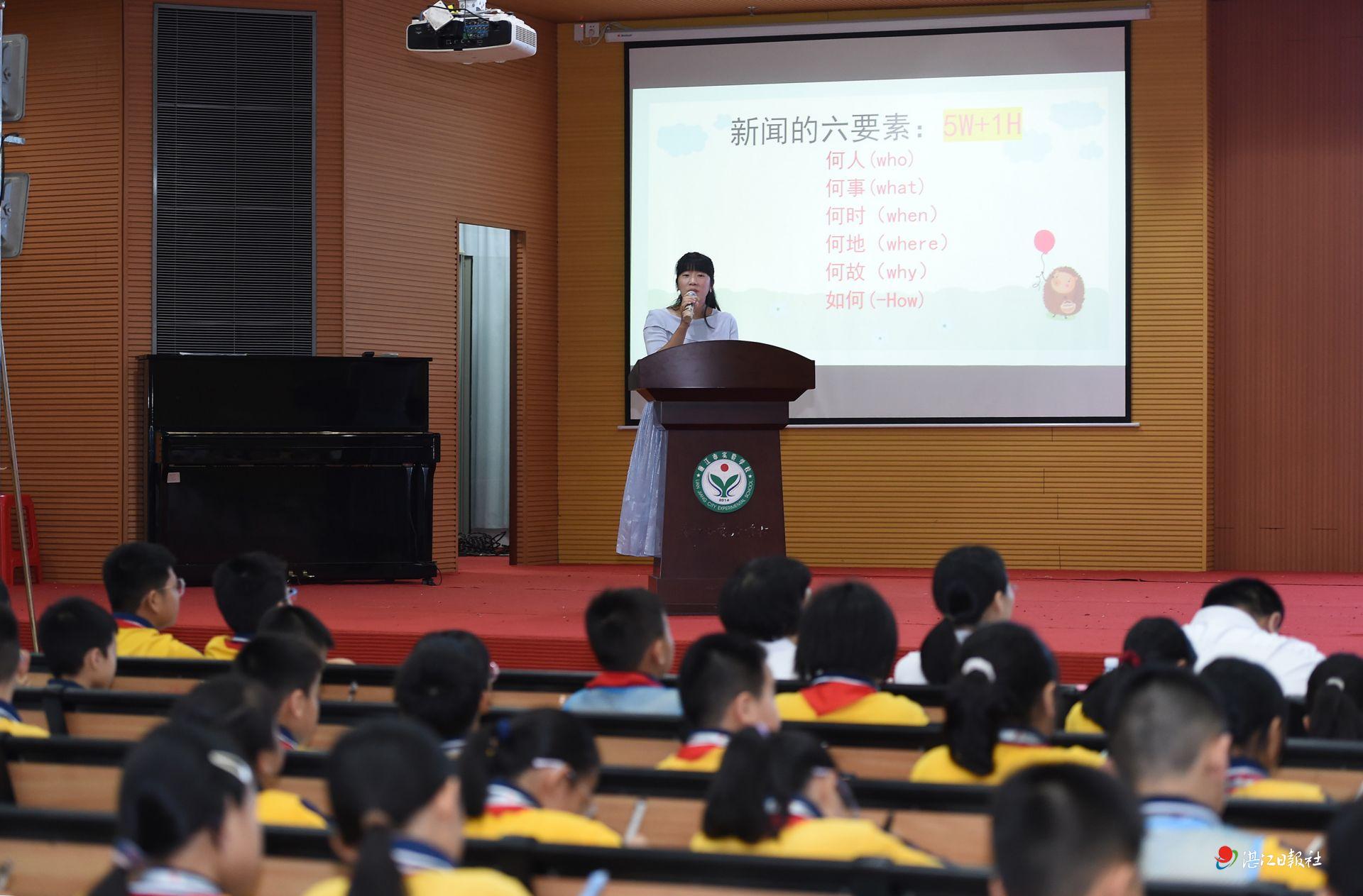 随后,湛江日报社资深记者带来了干货满满的新闻素养专题授课,将专业的新闻知识变得通俗易懂、贴近校园。课堂上,记者老师结合网络相关热点案例,用生动鲜活的语言,为小记者们厘清新闻与作文的核心区别,细致拆解新闻“真实、新鲜、重要、趣味、贴近”五大特性,手把手传授新闻六要素与小学生专属三段式写作技巧。