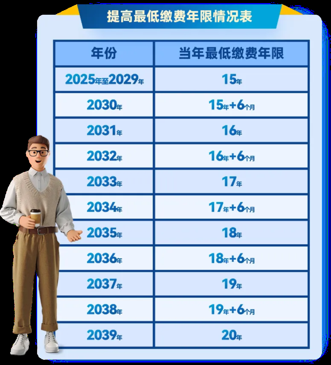 二是养老保险累计缴费年限达到国家规定的最低标准。目前最低年限是15年,从2039年开始提高至20年。