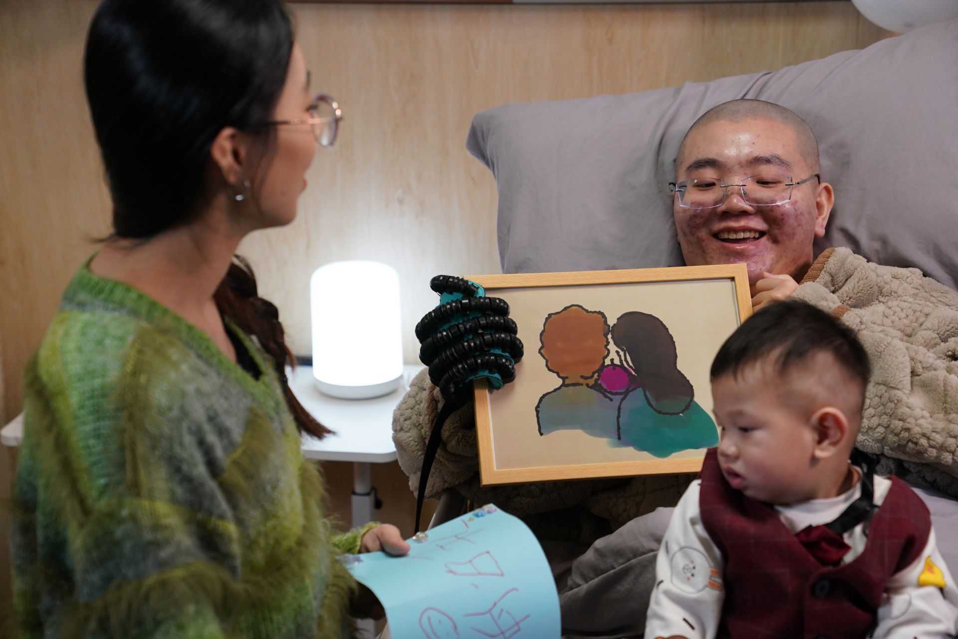 3月28日,邓先生通过脑机接口控制外骨骼将全家福送给家人。